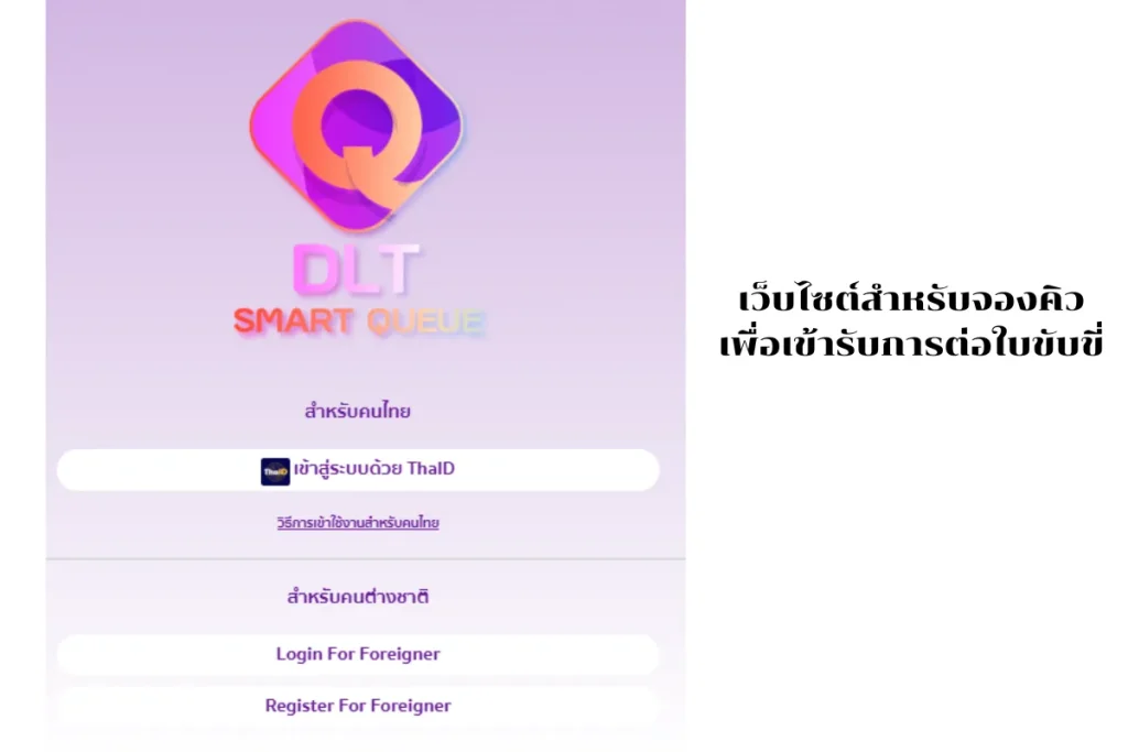 ผู้ขับขี่สามารถจองคิวผ่านเว็บไซต์ https://gecc.dlt.go.th หรือแอพพลิเคชั่น DLT Smart Queue เพื่อจองคิวล่วงหน้าในการยื่นเอกสารต่างๆเพื่อขอรับใบขับขี่