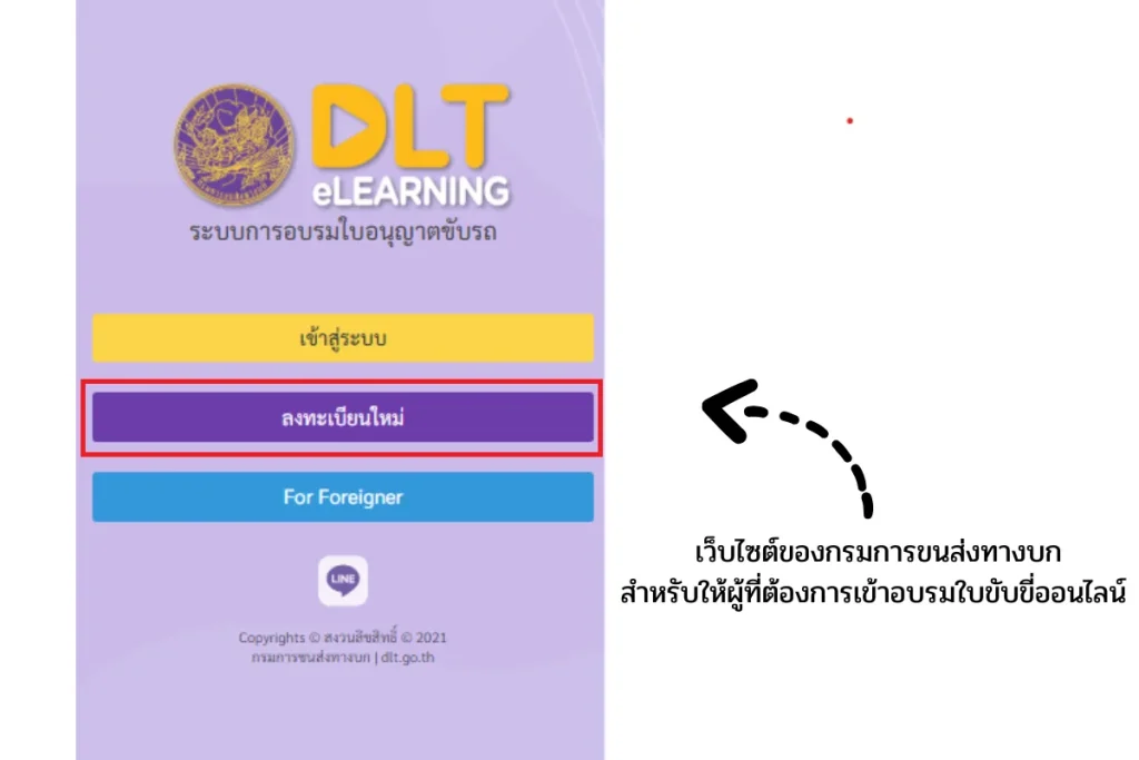 1.เข้าสู่เว็บไซต์ www.dlt-elearning.com เพื่อลงทะเบียนอบรมใบขับขี่ออนไลน์