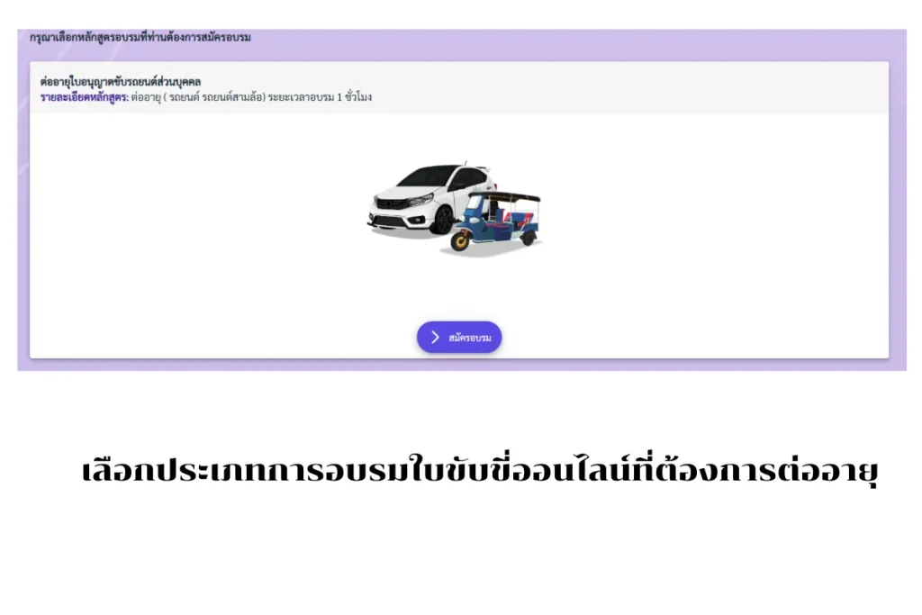 3.เลือกประเภทการอบรมใบขับขี่ออนไลน์ที่ต้องการต่ออายุ
