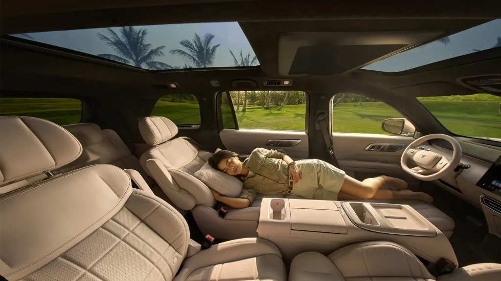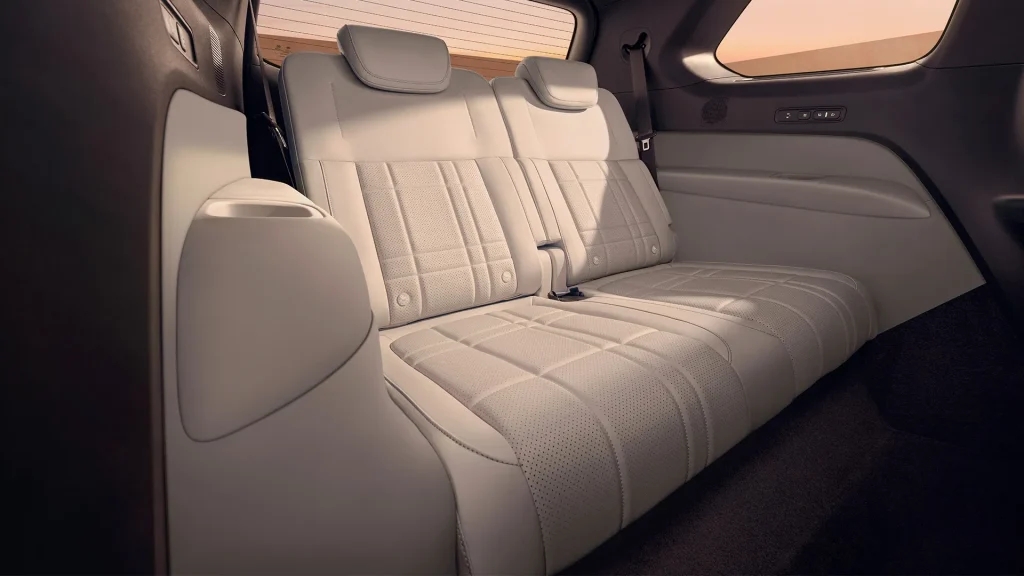 ส่วนภายในห้องโดยสารมีให้เลือก 3 โทนสี คือ สีเบจ, สีส้ม และสีขาว มาพร้อมการจัดวางแบาะนั่งแบบ 3 แถว 6 ที่นั่ง 2+2+2 เบาะฝั่งคนขับปรับไฟฟ้า 8 ทิศทาง และเบาะผู้โดยสารปรับไฟฟ้า 4 ทิศทาง ในรุ่นเริ่มต้น และเบาะฝั่งคนขับปรับไฟฟ้า 12 ทิศทาง และเบาะผู้โดยสารปรับไฟฟ้า 8 ทิศทาง ในรุ่นย่อยอื่นๆ พร้อมระบบทำความร้อน ระบบระบายอากาศและฟังก์ชันการนวด 8 จุด
