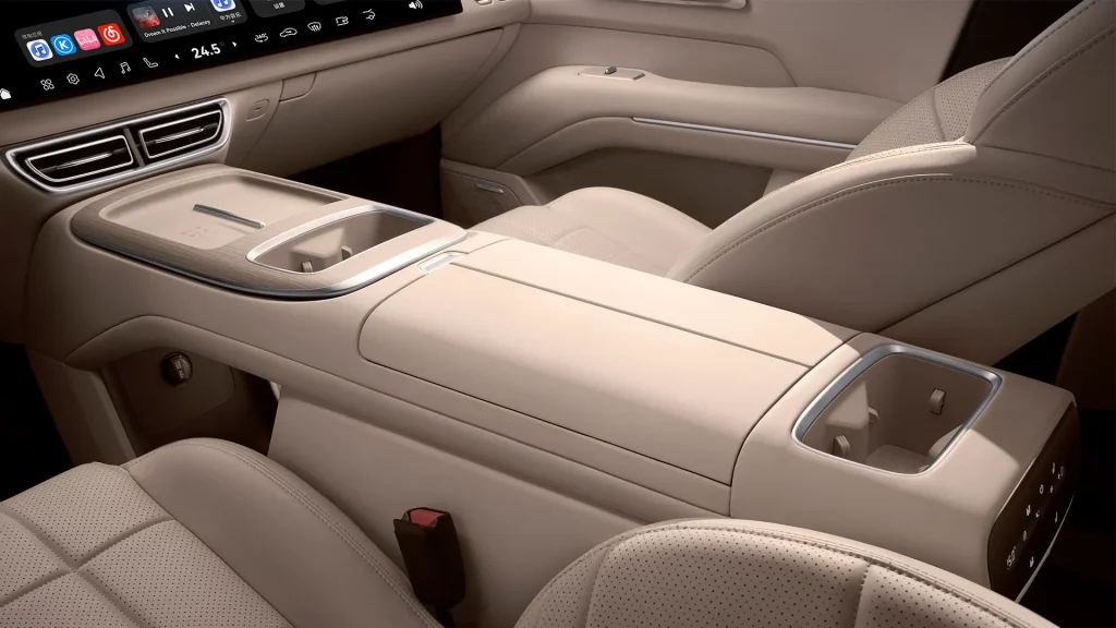 นอกจากนั้นยังมาพร้อม หน้าจออินโฟเทนเมนต์ 2 จอ ขนาด 15.6 นิ้ว จอแสดงผลแบบ Head Up Display ขนาด 43 นิ้วพร้อมระบบ Harmony Space หน้าจอบนเพดานสำหรับผู้โดยสารแถวที่ 2 ขนาด 21.4 นิ้วให้ความคมชัดระดับ 3k พวงมาลัยมัลติฟังก์ชันรูปทรง D-Shape แท่นชาร์จไร้สาย ช่องเก็บของด้านหน้าและด้านหลัง และช่องแช่เครื่องดื่มปรับอุณหภูมิร้อน – เย็น ได้ตั้งแต่ -6°C ถึง 50°C ความจุ 10 ลิตร