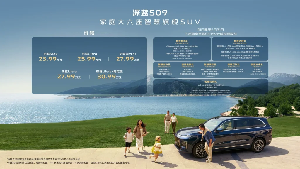 ทั้งนี้ Deepal S09 เริ่มวางจำหน่ายแล้วที่จีน ในราคาเริ่มต้น 239,900 – 309,900 หยวนหรือคิดเป็นเงินไทยประมาณ 1.08 – 1.4 ล้านบาท หลังจากหักเงินอุดหนุนจากรัฐ จะเริ่มต้น 204,900 หยวน หรือคิดเป็นเงินไทยประมาณ 920,000 บาท ส่วนที่ไทยคาดว่าจะได้เห็นการเผยโฉม S09 ในเร็วๆนี้