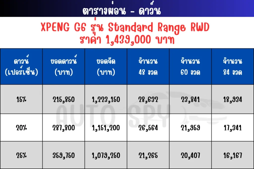 XPENG G6 2025 ตารางผ่อน – ดาว์น