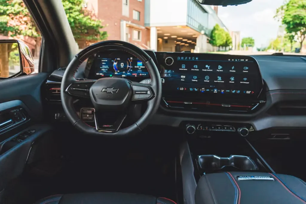 โดย Chevrolet Silverado EV Trail Boss 2026 ที่นอกจากจะมาพร้อมชุดแต่งสไตล์ออฟโรดรอบคัน ทั้งกันชนหน้าเฉพาะรุ่นและการยกตัวรถให้สูงขึ้นถึง 2 นิ้วและเสริมสมรรถนะด้วยล้อออฟโรด ขนาด 18 นิ้ว รัดด้วยยาง AT ขนาด 35 นิ้วแล้ว