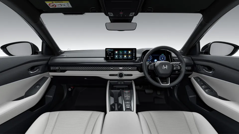 Honda Accord e:HEV SENSING 360+ รุ่นใหม่มาพร้อมการดีไซต์ภายนอกและภายในสุดพิเศษ ด้วย กระจกมองข้างสีดำใหม่ เพิ่มความสปอร์ตด้วยเสาอากาศครีบฉลามสีดำและล้ออัลลอย ขนาด 18 นิ้ว สี Berlina Black ส่วนภายในห้องโดยสารถูกตกแต่งด้วยโทนสีดำและสีขาวพิเศษ ที่มาพร้อมเบาะหนังสีขาวเพื่อเพิ่มความหรูหราอย่างมีระดับ