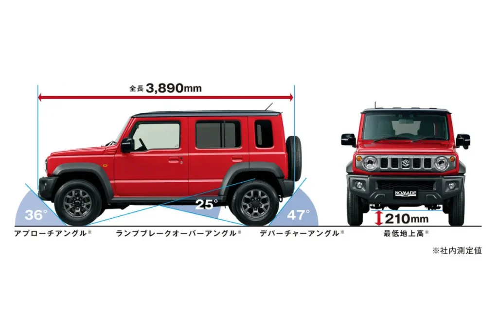 โดย Suzuki JIMNY 5 Door หรือ Suzuki JIMNY NOMADE เป็นรถเอสยูวีออฟโรดที่ถูกพัฒนาต่อยอดมาจาก Suzuki Jimny Sierra รุ่น 3 ประตู ที่มีขนาดฐานล้อยาวขึ้นและพื้นที่ภายในห้องโดยสารที่กว้างขวางสามารถใช้งานได้ทั้งในเมืองและเส้นทางออฟโรด