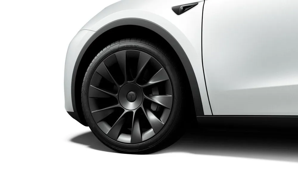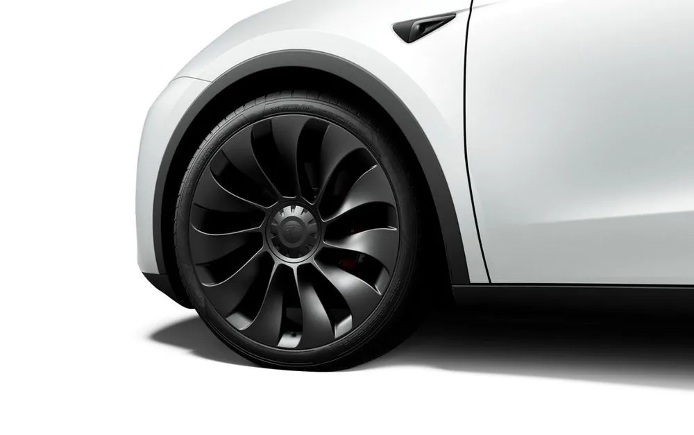 TESLA Model Y ในรุ่น Rear-Wheel Drive ล้อ Gemini Wheels ขนาด 19 นิ้ว รัดยางขนาด 255/45 R19 พร้อมฝาครอบล้อสีดำ
