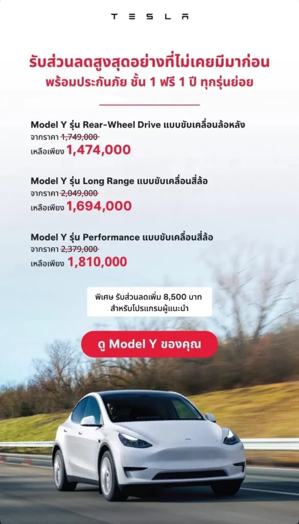 - TESLA Model Y รุ่น Rear-Wheel Drive ราคา 1,474,000 บาท