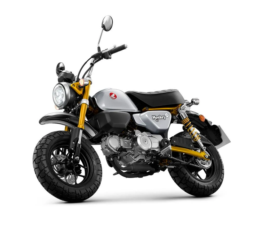 โดย New Honda Monkey 2025 เปิดตัวมาด้วยตัวถังสีเงินตัดกับช่วงล่างสีเหลืองสีสันสวยสะดุดตาได้อย่างลงตัว ไฟหน้าทรงกลมโตที่เป็นเอกลักษณ์เฉพาะตัวในแบบฉบับ Monkey มาพร้อมหน้าปัด Negative LED Meter ที่เพิ่มความพิเศษด้วยกราฟิกหน้าลิงที่โผล่ขึ้นมาทักทายเมื่อเปิดสวิตซ์และเบาะหนัง Classic Black ที่ให้ความรู้สึกนั่งสบายได้ทุกการขับขี่