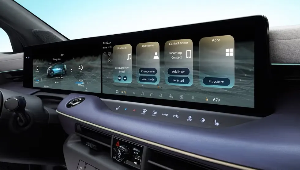 ในขณะที่ภายในห้องโดยสารเน้นการออกแบบให้มีพื้นที่กว้างขวาง ตกแต่งด้วยไฟสร้างบรรยากาศในห้องโดยสาร Ambient Ligth ปรับได้มากถึง 64 สี มาพร้อมการติดตั้งหน้าจอคู่ ขนาด 12.3 นิ้ว และ 14.3 นิ้ว (ในแต่ละรุ่นย่อย), ติดตั้ง Google Built-in : Google MAPS ,รองรับการเชื่อมต่อ Apple CarPlay และ Android Auto แบบไร้สาย ,แท่นชาร์จแบบไร้สาย , ช่อง USB-C, ระบบเสียง Bose ลำโพง 10 ตำแหน่ง และหลังคากระจก Panoramic Roof พร้อมม่านหลังคาไฟฟ้าแบบปรับความทึบ Infrared Adjustable Transparency
