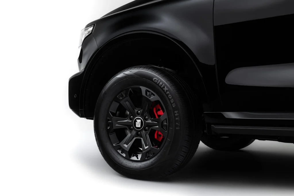 - ล้ออัลลอยด์ขนาด 18 นิ้วสีดำ ยางขนาด 265/60R18 พร้อมคาลิปเปอร์เบรกสีแดง
