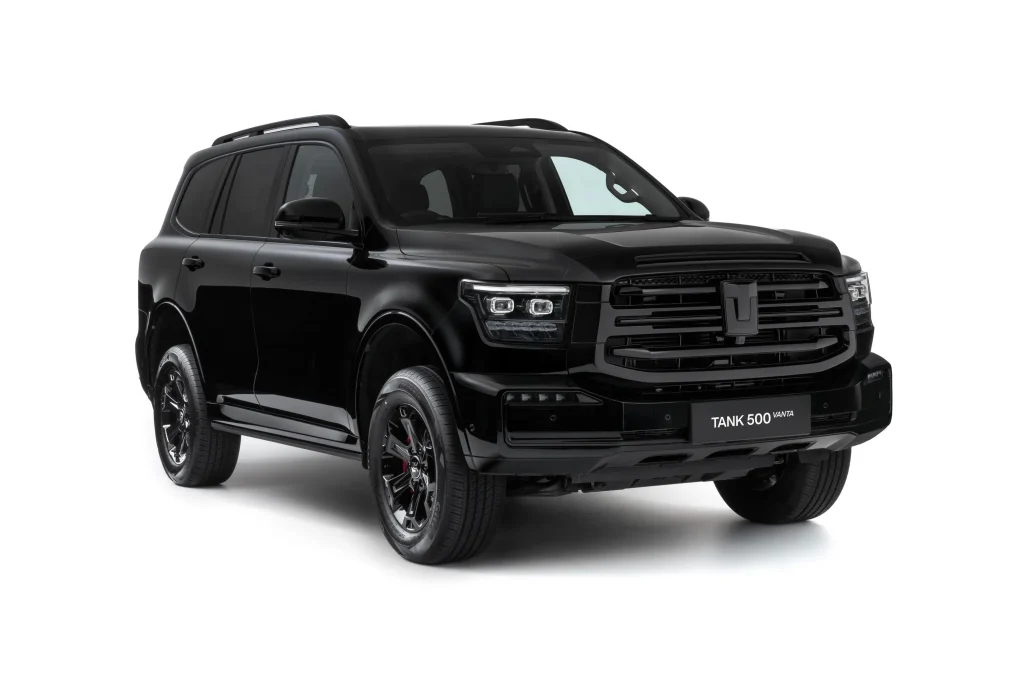 GWM TANK 500 Vanta เอสยูวีสายลุยรุ่นใหญ่ ที่ถูกพัฒนามาจากรุ่น ULTRA HEV เพิ่มความพิเศษด้วยชุดตกแต่งสีดำรอบคัน ปรับลุคใหม่ให้ดูคมเข้มมากขึ้น โดยจะเปิดตัวและวางจำหน่ายเฉพาะที่ตลาดออสเตรเลียเท่านั้น