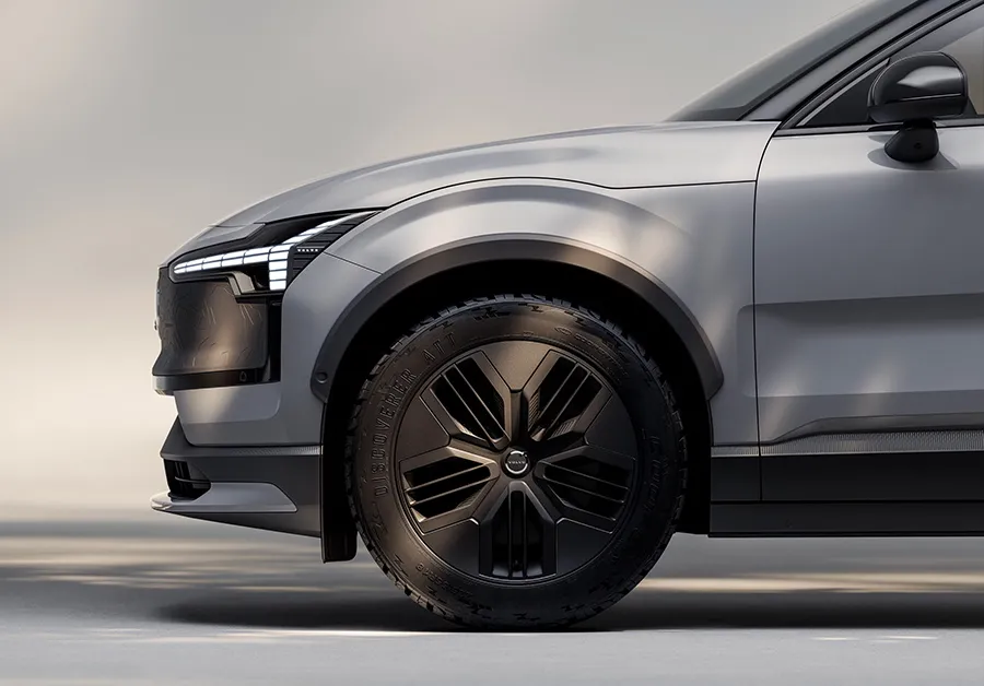 Volvo EX30 Cross Country รถยนต์ไฟฟ้าออฟโรดที่แตกต่างไปจากรุ่นเดิม ด้วยการปรับความสูงของตัวรถให้เพิ่มขึ้น 18 มม. ที่มาพร้อมล้ออัลลอยลาย Aero Insert ขนาด 19 นิ้ว รัดด้วยยางขนาด 235/50 R19 ที่สามารถขับขี่ได้ทุกเส้นทาง แต่ก็ยังคงมีการปรับปรุงสปริงและโช็คอัพให้ดีมากยิ่งขึ้นเพื่อให้สามารถขับขี่ได้อย่างนุ่มนวล แม้กระทั่งการขับขี่ในทางขรุขระ