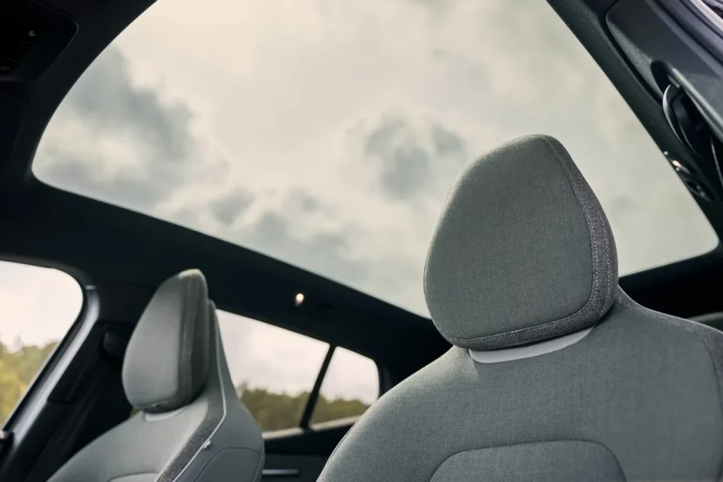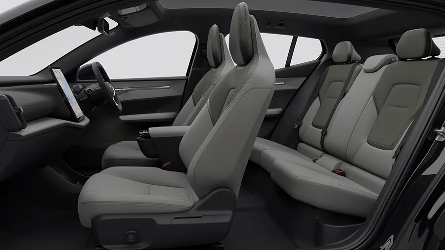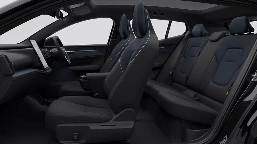ในขณะที่ภายในห้องโดยสารโดดเด่นด้วยหน้าจอกลางระบบสัมผัส Touch Screen ขนาด 12.3 นิ้ว รองรับการเชื่อมต่อ iOS (Apple CarPlay) แบบไร้สายมาพร้อมลำโพง 9 ตำแหน่ง พร้อม Amplifier, ระบบปรับอากาศอัตโมมัติ 2 โซนพร้อมเซ็นเซอร์วัดค่า PM2.5, แท่นชาร์จโทรศัพท์ไร้สาย Wireless Charger, กล้องมองภาพรอบทิศทาง 360 องศา, แอปพลิเคชั่นควบคุม Volvo EX30 App, NFC Smart Card, กุญแจแบบ Digital Key Plus, ระบบ Digital Services, หลังคากระจก Panoramic Roof และเบาะนั่งคู่หน้าปรับไฟฟ้าพร้อมปุ่มปรับดันหลัง Lumbar Supportและเบาะหลังพับได้ 60:40
