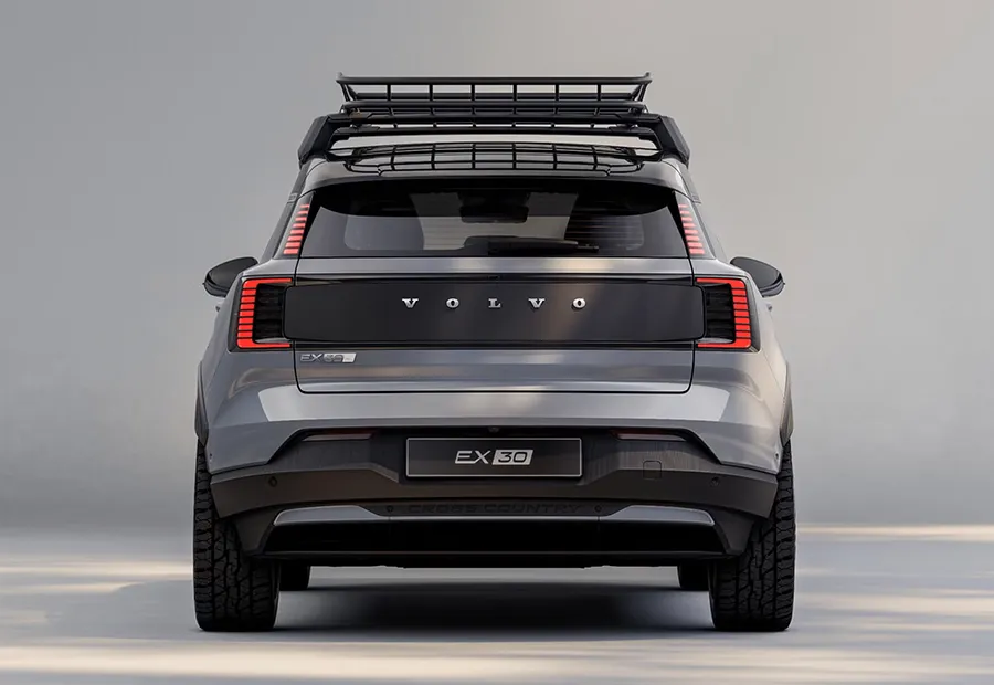 บริเวณกระจังหน้ายังถูกออกแบบให้เป็นสีดำและตกแต่งด้วยลวดลายแผนที่ภูเขา บริเวณแผ่นบังโคลนหน้า-หลังตกแต่งด้วยสีดำที่ช่วยให้ Volvo EX30 Cross Country เท่มากยิ่งขึ้น และยังมาพร้อมแร็คหลังคาสีดำและถาดเก็บสัมภาระบริเวณบนหลังคาที่ช่วยให้สามารถเก็บของได้เยอะขึ้นและบริเวณรอบคันยังถูกติดตั้งสัญลักษณ์ Cross Country ที่ช่วยให้ Volvo EX30 Cross Country มีความพิเศษมากกว่ารุ่นอื่น