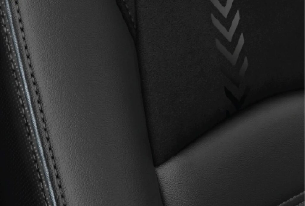 - เบาะนั่งหุ้มหนังและผ้าสีดำ – ด้ายสีเทา