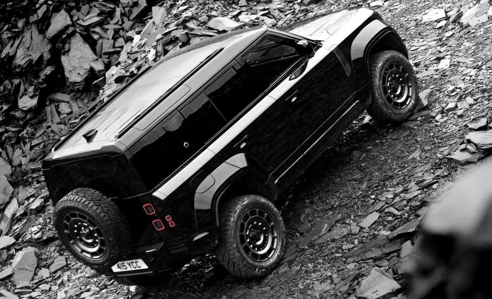 Land Rover Defender OCTA Black โดดเด่นด้วยการดีไซต์ตัวรถสีดำสนิทที่เรียกได้ว่าดำทุกมิติ พื้นผิวตัวถังแบบเงา (gloss) แต่สามารถนำไปติดฟิล์มเคลือบผิวด้านได้ตามต้องการ มาพร้อมการติดตั้งกันชนหน้าพร้อมแผ่นกันกระแทกแบบ satin black powder coat กระจังหน้าสีดำเข้มพร้อมอักษร “Defender” ไฟหน้าดีไซต์ใหม่ ปลายท่อไอเสีย 4 ท่อเคลือบ Gloss Black พร้อมเพิ่มความดุดันด้วยตะขอลากสีดำด้านและล้อแบบ Forged ขนาด 20 นิ้ว และ 22 นิ้วสี Gloss Black พร้อมฝาครอบและคาลิเปอร์เบรกสีดำ