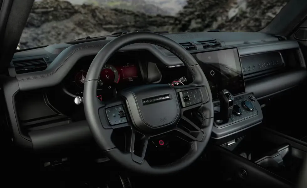 ในขณะที่ภายในห้องโดยสารมาในธีม “Tough Luxury” ด้วยการใช้วัสดุหนังแบบ Semi-Aniline สี Ebony ผสมผ้ารุ่นพรีเมียมจาก Kvadrat ที่ให้สัมผัสที่หรูหราและแข่งแกร่งไปพร้อมๆกัน มาพร้อมแผงแดชบอร์ดสี Satin Black Powder Coat, จอ Infotainment ขนาด 13.1 นิ้ว, ระบบเสียงรอบทิศทาง Meridian™ 700W จำนวน 15 ลำโพง, ระบบ Body and Soul Seats ส่งคลื่นเสียงผ่านเบาะนั่งและอุปกรณ์ต่างๆภายในห้องโดยสารที่เน้นตกแต่งด้วยโทนสีดำเป็นหลัก