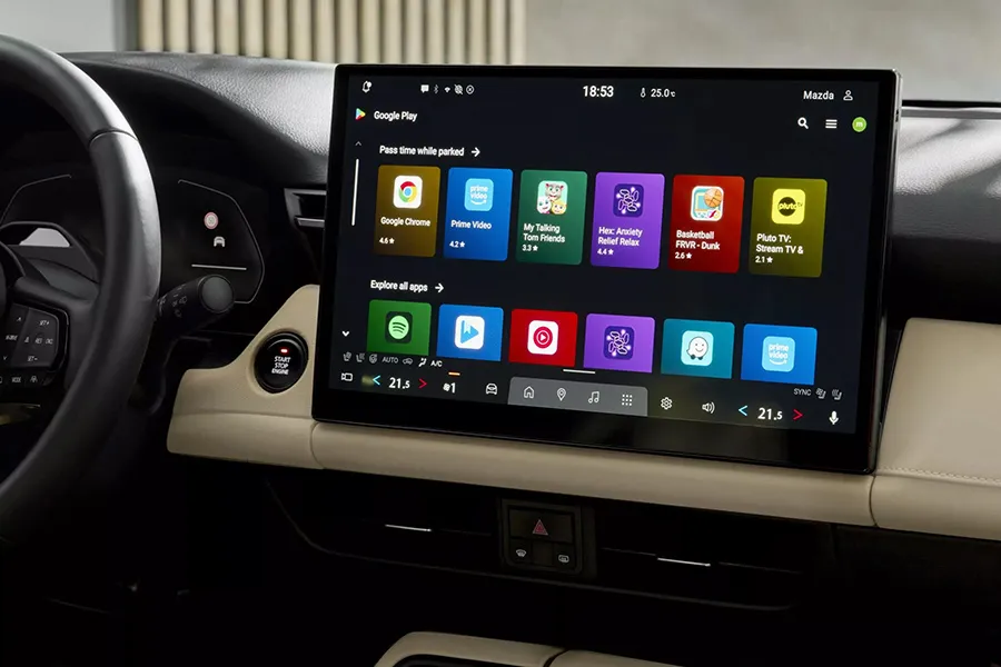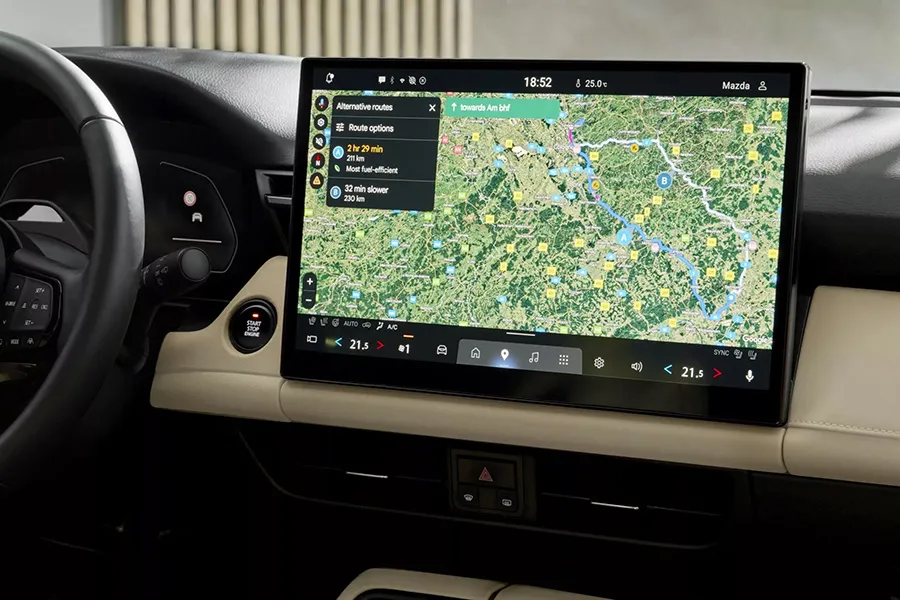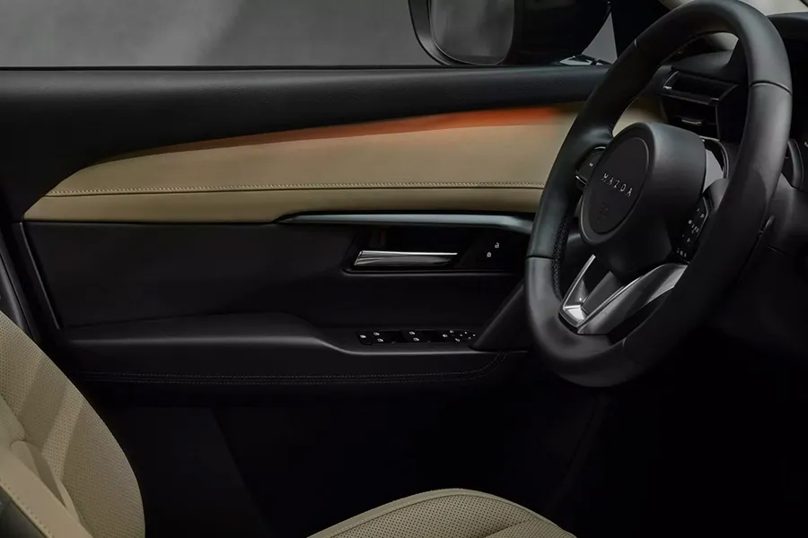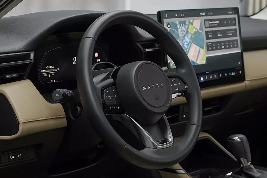 - พวงมาลัยมัลติฟังก์ชั่นแบบ 3 ก้านดีไซน์ใหม่ พร้อมโลโก้ MAZDA