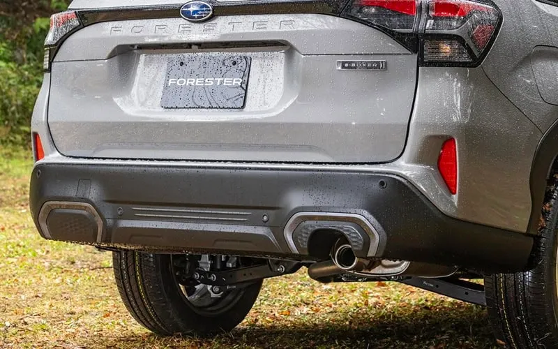 All NEW Subaru Forester มาพร้อมการปรับดีไซต์ใหม่ทั้งภายนอกและภายในให้ทันสมัยและแข็งแกร่งมากขึ้น ภายใต้แนวคิด Ready for Adventure ด้วยการออกแบบไฟหน้าและกระจังหน้าหกเหลี่ยมผสานกันเพื่อให้ตัวรถดูกว้างขึ้น มาพร้อมกันชนหน้าแบบแยกช่องลม ด้านข้างถูกติดตั้งด้วยกาบพลาสติกรอบคันและเสริมความหนาขอบล่างของกระจกเพื่อเพิ่มความบึกบึน มาพร้อมล้อ ขนาด 19 นิ้ว ตกแต่งลวดลายให้ดูมีการเคลื่อนไหวอยู่เสมอ ตบท้ายด้วยการออกแบบไฟท้ายเชื่อมต่อกันเป็นแนวยาวและประตูหลังไฟฟ้า