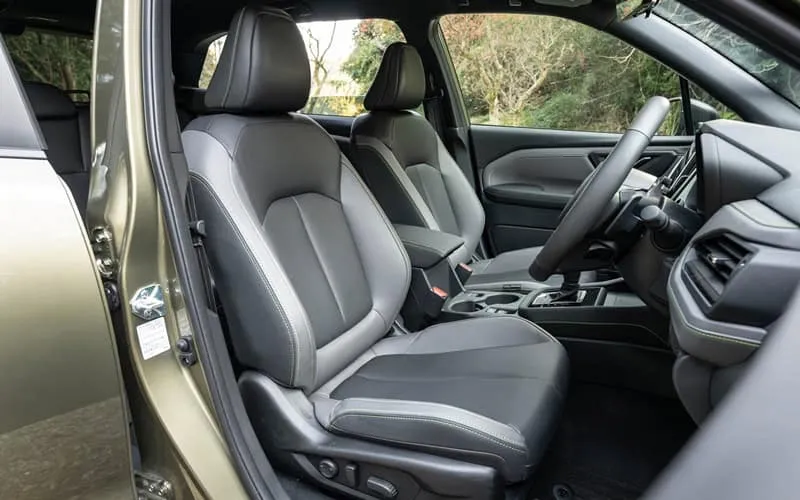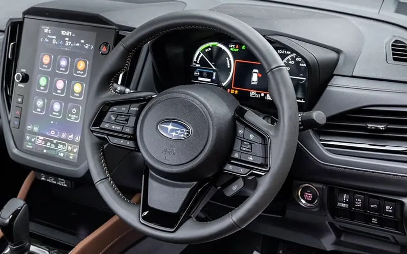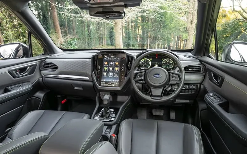 ในขณะที่ภายในห้องโดยสารถูกออกแบบให้ทันสมัย พร้อมตกแต่งด้วยวัสดุคุณภาพสูง โดดเด่นด้วยมาตรวัด LCD ขนาด 11.6 นิ้วมาพร้อมหน้าจอสัมผัสขนาด 12.3 นิ้ว ทำงานร่วมกับระบบเชื่อมต่อ Subaru Starlink และระบบเครื่องเสียง Harman Kardon ที่มาพร้อม Subwoofer และเบาะนั่งที่มีทั้ง ผ้ากันน้ำและหนัง Nappa ที่ถูกออกแบบให้ลดแรงสะเทือนและเสียงรบกวน พร้อมเพิ่มความพิเศษด้วยการยึดรางเบาะกับตัวถังเพื่อลดการสั่นสะเทือน